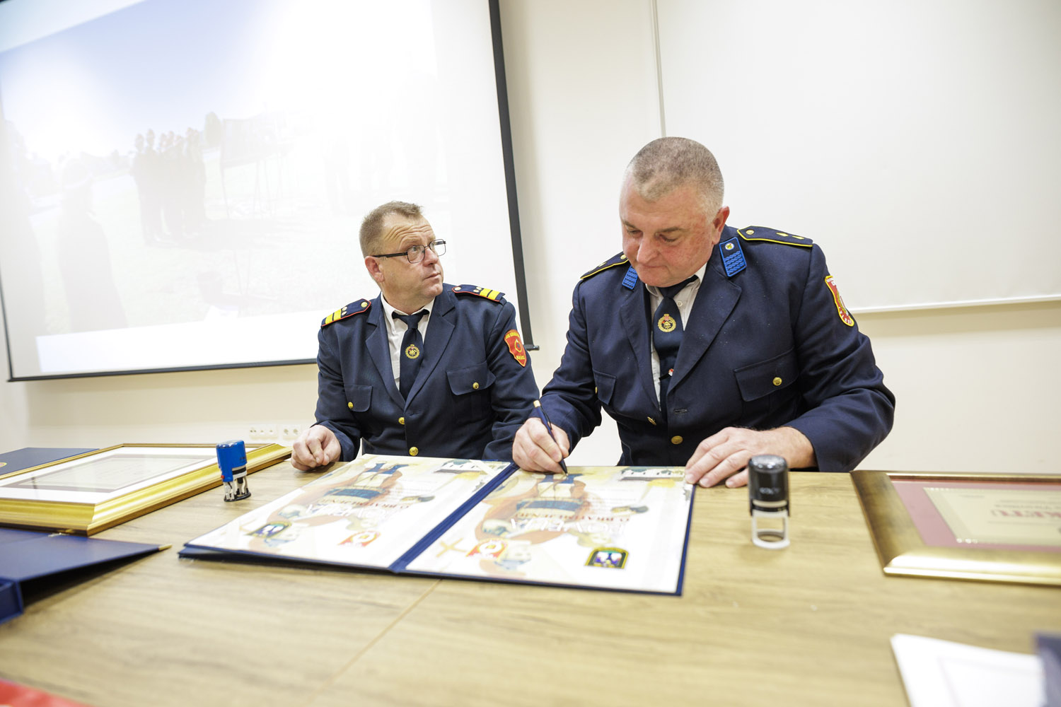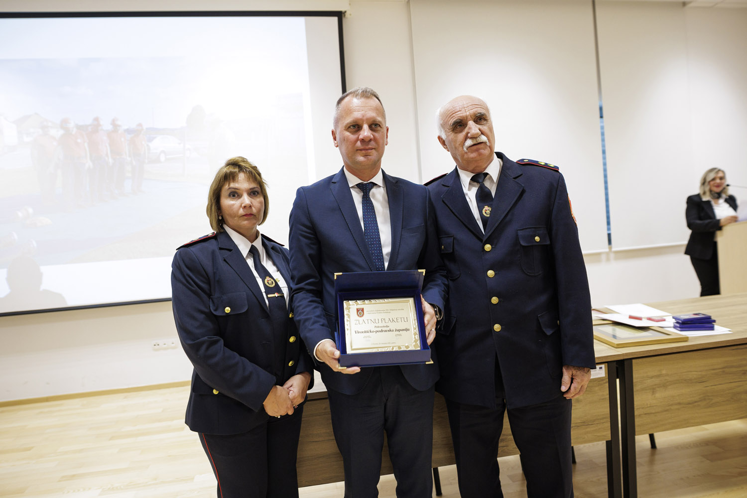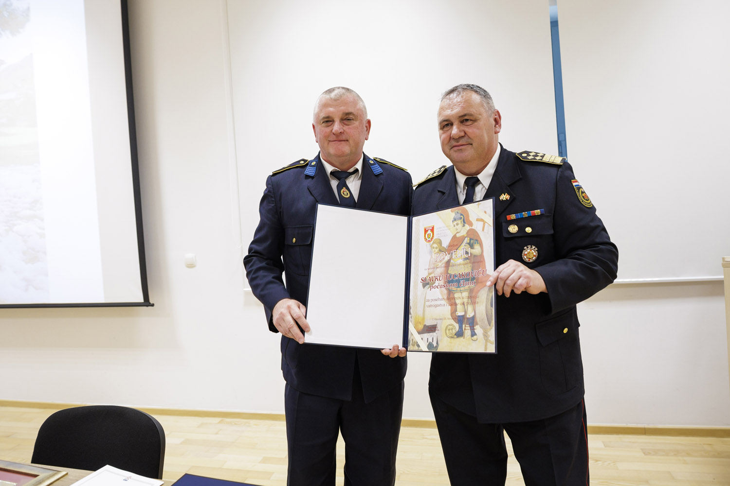 župnik župe sv. Roka Virovitica, dobri prijatelj vatrogasaca, čovjek široka duha koji također služi zajednici i gradi jednu sigurniju budućnost za sve. Vatrogascima je oduvijek duhovna podrška, a u radu partner, a povelju počasnog člana dobio je i Slavko Tucaković. Posljednji čin darivanja, bio je vrijednoj ekipi, Muški B, koji su na 9. Državnom natjecanju vatrogasaca Republike Hrvatske, održanom 11. listopada u Novalji, ostvarili izniman uspjeh. Osvojili su prvo mjesto u svojoj kategoriji i ponosno se plasirali na vatrogasnu Olimpijadu, međunarodno vatrogasno natjecanje koje će se sljedeće godine održati u Austriji. Budući da je ovoj ekipi kum virovitički gradonačelnik Ivica Kirin, a koji im je dao ime Lavovi, on im je i uručio priznanja. Svečanost je završila bratimljenjem i potpisivanjem povelje prijateljstvu DVD-a Virovitica i Našice. (www.icv.hr, Fotografije: LM Digital)