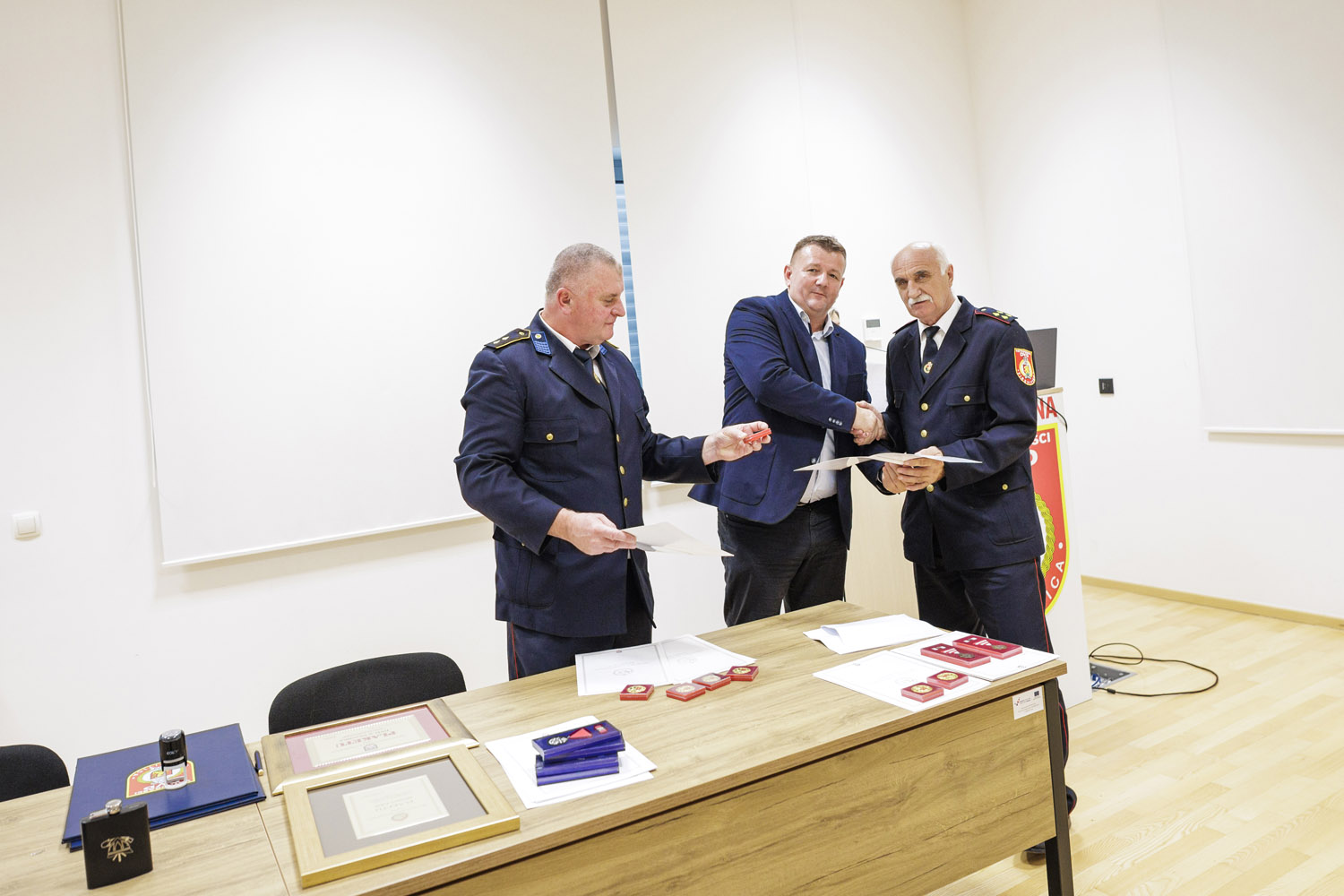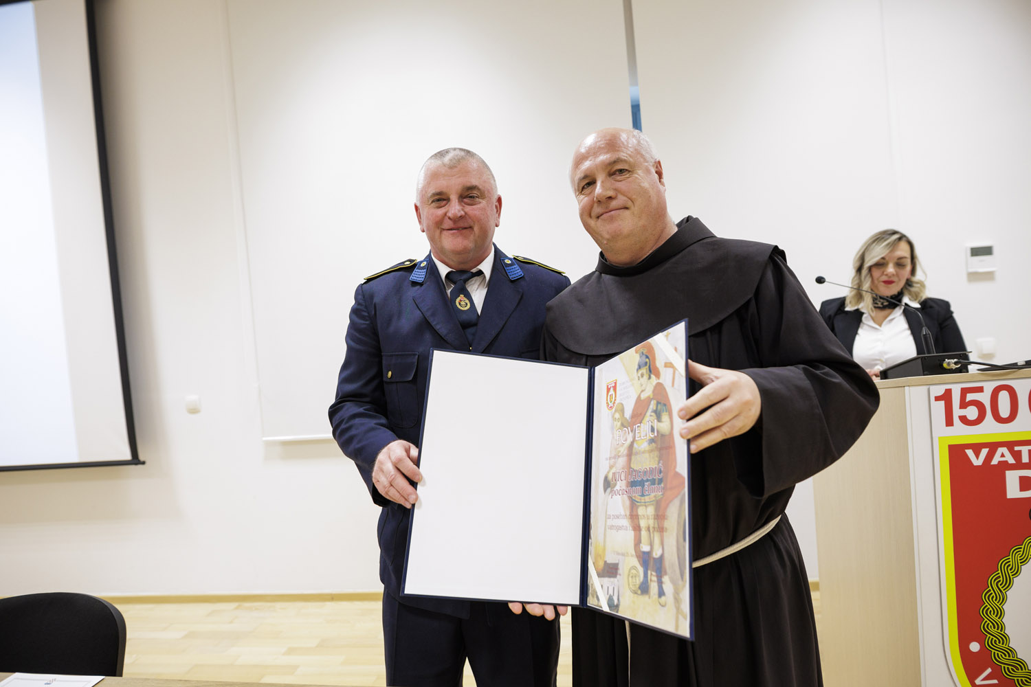 Predsjednik DVD-a Virovitica Mario Pavelić dodijelio je i posebne povelje onima koji svojim radom, trudom i angažmanom pomažu Društvu te čuvaju i promiču vrijednosti vatrogastva. Povelju počasnog člana ove godine primo je fra Ivica Jagodić,